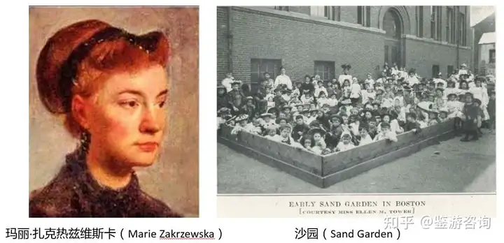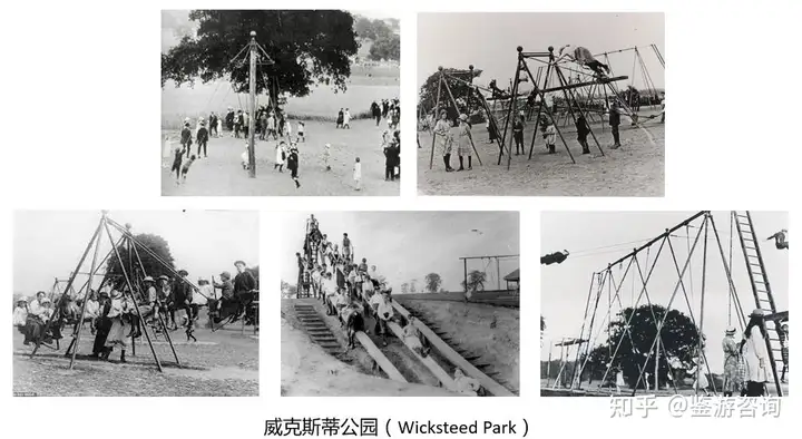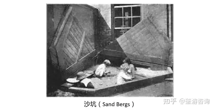 第二部分是无动力乐园的早期发展阶段,也就是19世纪到20世纪初。从最初的沙坑,到一些简单的设施,再到现代无动力乐园的雏形(样板乐园),这其中蕴涵了来自德国、美国和英国的各种探索,教育家、设计师、建筑师和工程师的各种思维碰撞。