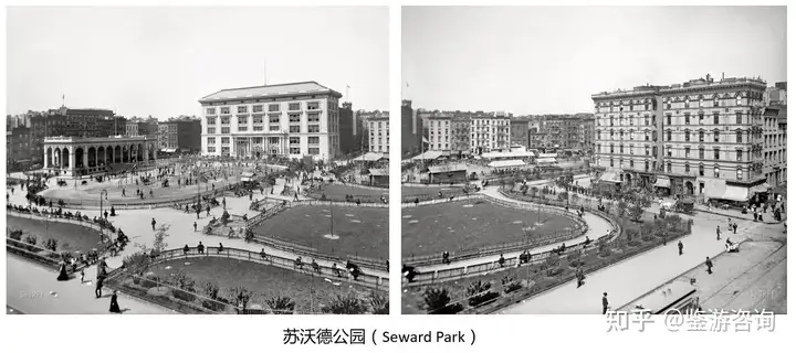 回到纽约,美国第一座永久性的市政游乐场的开业,预示着游乐场一个新时代的到来,并成为游乐场规划设计的标杆。她就是苏沃德公园(Seward Park),由查尔斯·斯托佛(Charles Stover)建造。开业当天有2万个儿童“席卷”了公园,盛况空前。公园北部用煤渣铺设了地面,设有栅栏、休闲步道、游乐和健身设施。除了游乐场,还有一个很长的跑道,中间是自由玩耍区域,东南角是个儿童农场。弯曲的小路把公园分割成了不同的娱乐区域。